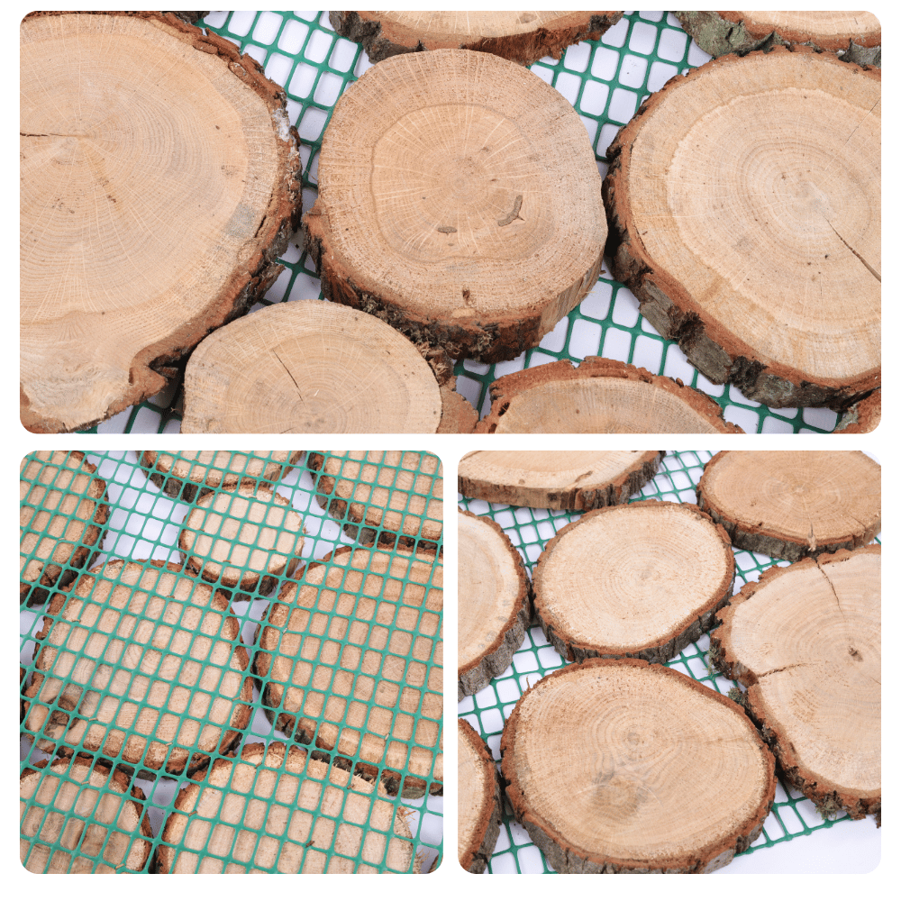 ✅ Ekologiczna drewniana ścieżka do ogrodu – z plastrów drewna dębowego zamocowanych na trwałej siatce.