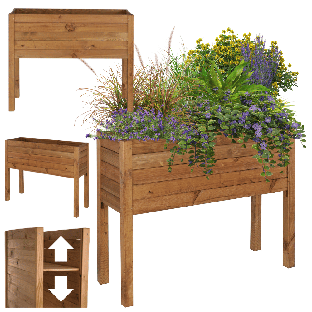 To oszczędność ziemi przy płytkim sadzeniu i pełna swoboda aranżacyjna. Dno wykonane jest z trwałych, drewnianych deseczek, które zapewniają solidne podparcie.