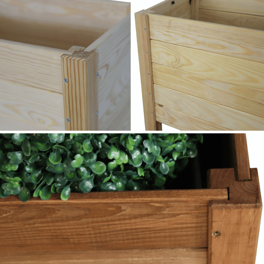 To oszczędność ziemi przy płytkim sadzeniu i pełna swoboda aranżacyjna. Dno wykonane jest z trwałych, drewnianych deseczek, które zapewniają solidne podparcie.