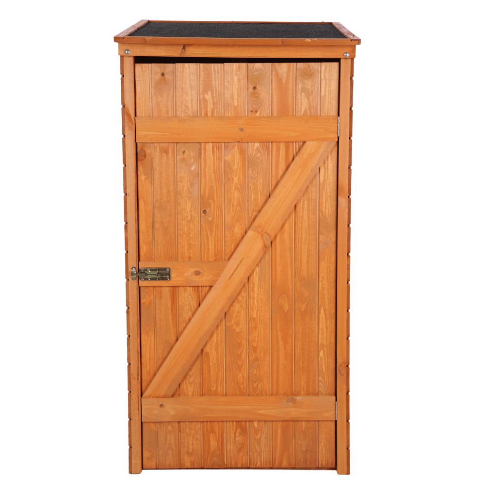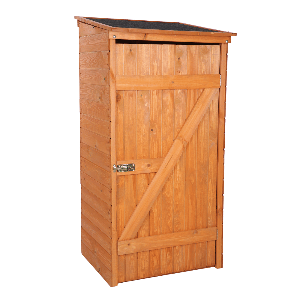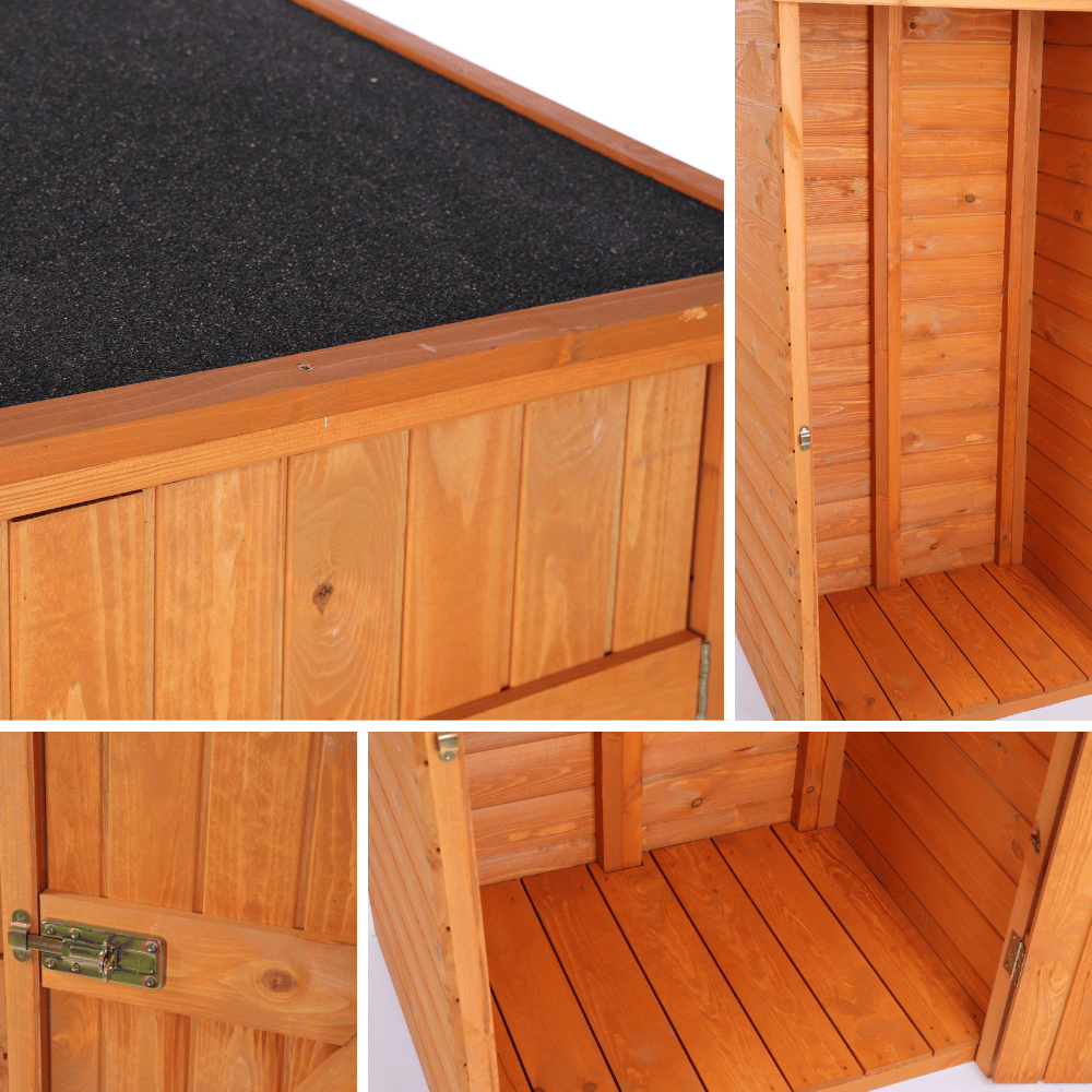 Drewniany domek narzędziowy z sosny – schowek ogrodowy z podłogą i dachem z papy.