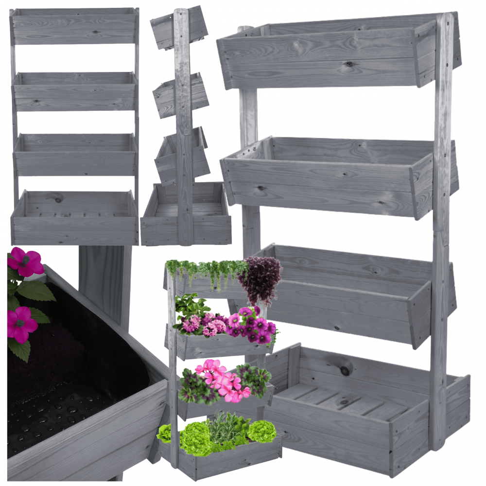 Zarejestruj sięKwietnik balkonowy drewniany 146 cm 4 półki impregnacja szara stojak ECO