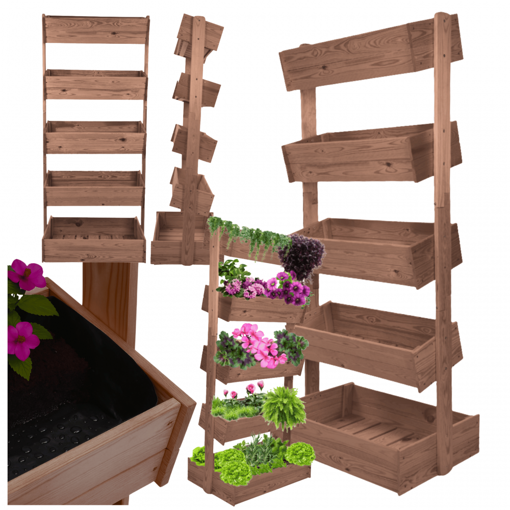 Nasz drewniany kwietnik pionowy doskonale sprawdzi się zarówno w przestrzeni ogrodowej, jak i na balkonie czy tarasie – wszędzie tam, gdzie chcesz stworzyć zieloną, przyjazną aranżację.