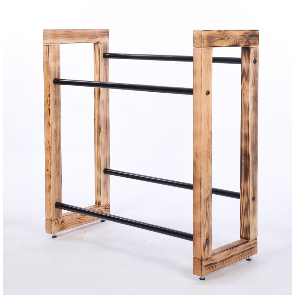 - Pachnące naturalne drewno sosnowe w połączeniu z czarnymi metalowymi drążkami.