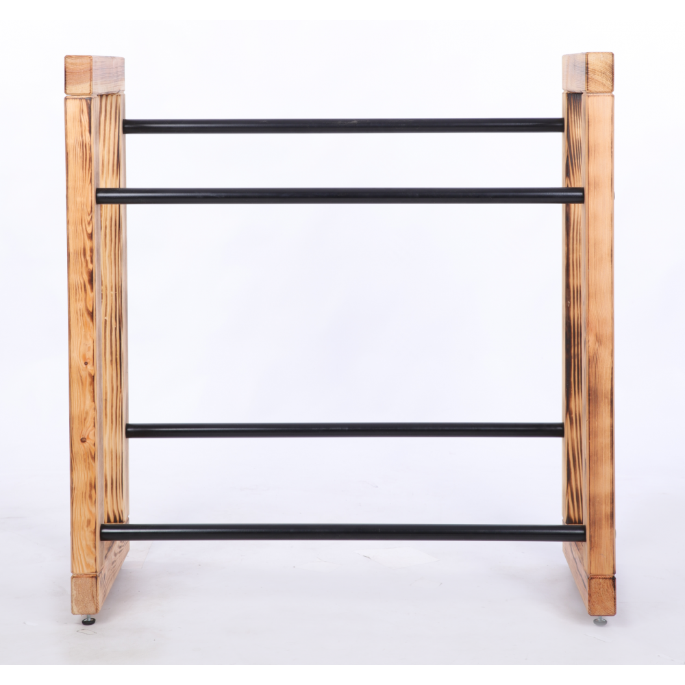 - Drewniany stojak ekspozycyjny z metalowymi drążkami - dla lepszej stabilności.