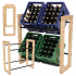 Drewniany stojak ekspozycyjny na skrzynki z metalowymi drążkami. Od polskiego producenta. Egzemplarz z bogatej kolekcji stojaków na skrzynki.
