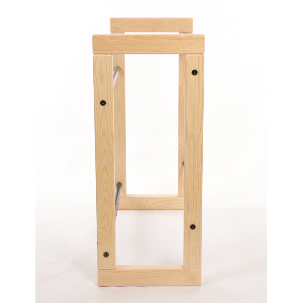 - Pachnące naturalne drewno sosnowe w połączeniu z czarnymi metalowymi drążkami.