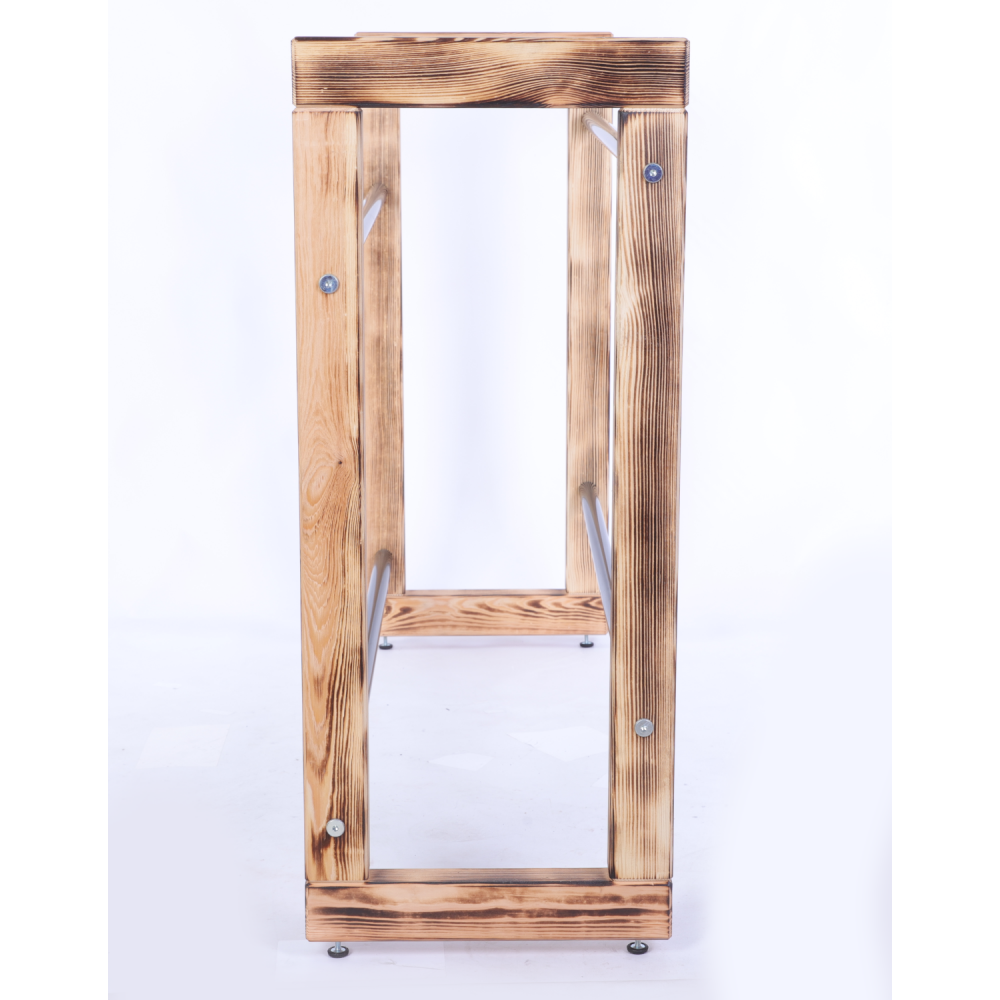 - Pachnące naturalne drewno sosnowe w połączeniu z czarnymi metalowymi drążkami.