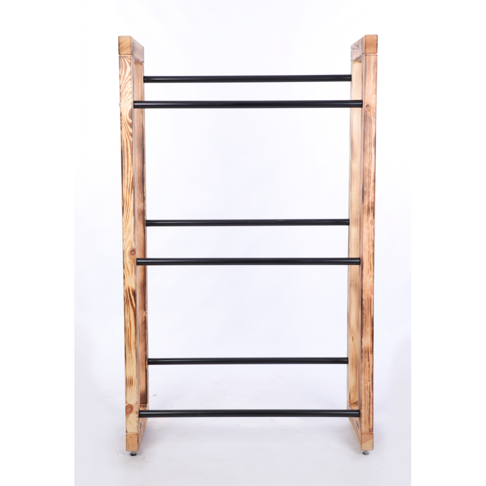 - Pachnące naturalne drewno sosnowe w połączeniu z czarnymi metalowymi drążkami.