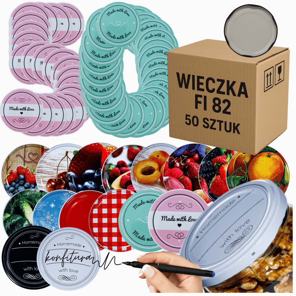 ⚠️ Po zakupie prosimy o podanie wybranego wzoru wieczka – w przeciwnym razie wyślemy wzór losowo.