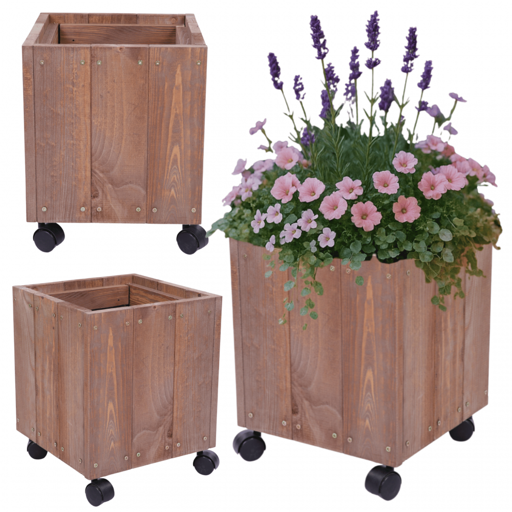 Zarejestruj sięDonica drewniana 36x28x28 cm IMPREGNACJA mobilna na kółkach do ogrodu