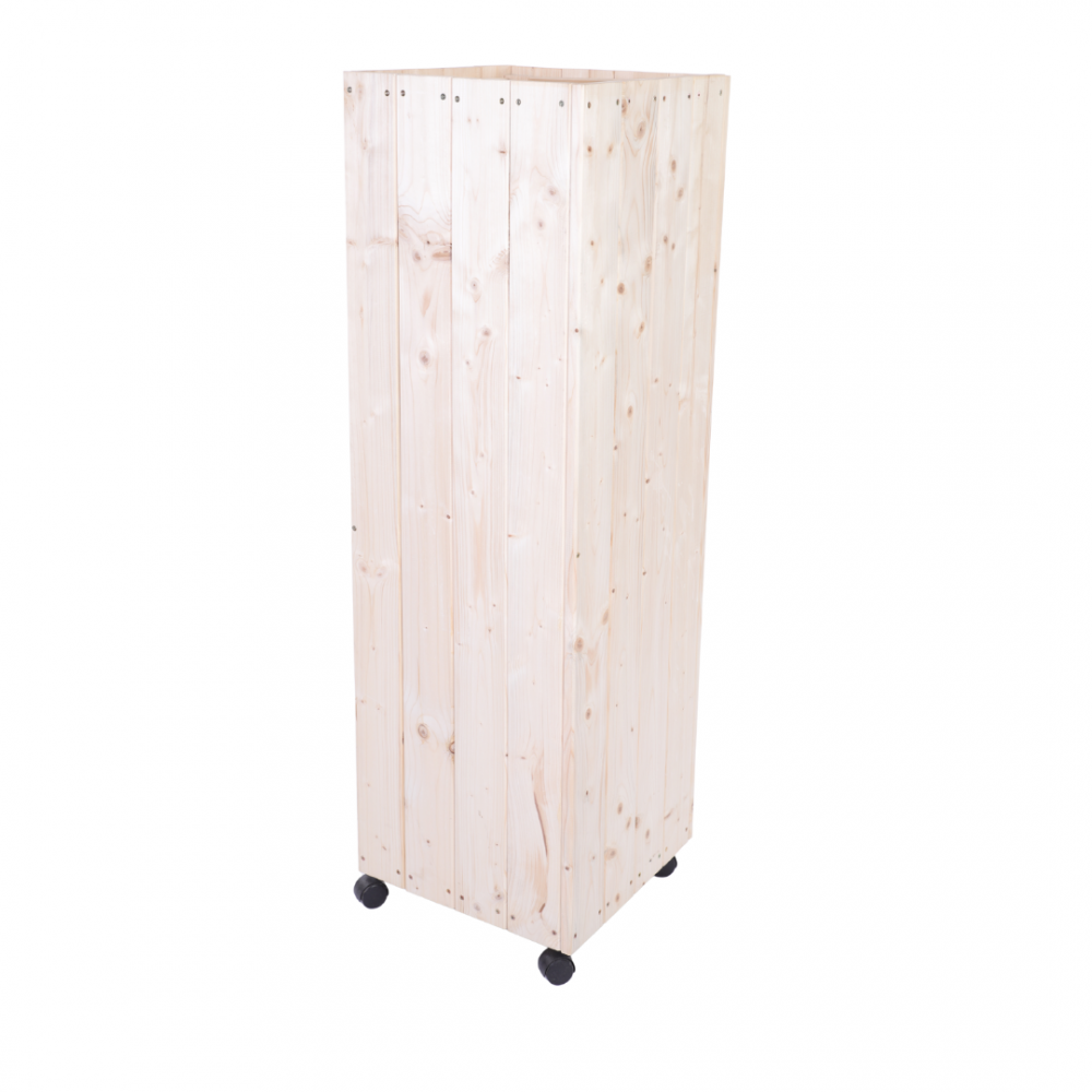 Zarejestruj sięDonica drewniana naturalna 123x37x37 cm wysoka mobilna na kółkach
