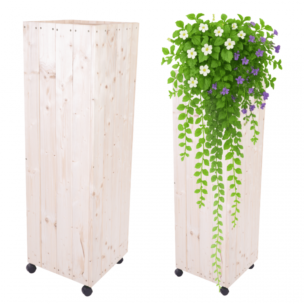 Zarejestruj sięDonica drewniana naturalna 143x37x37 cm wysoka mobilna na kółkach