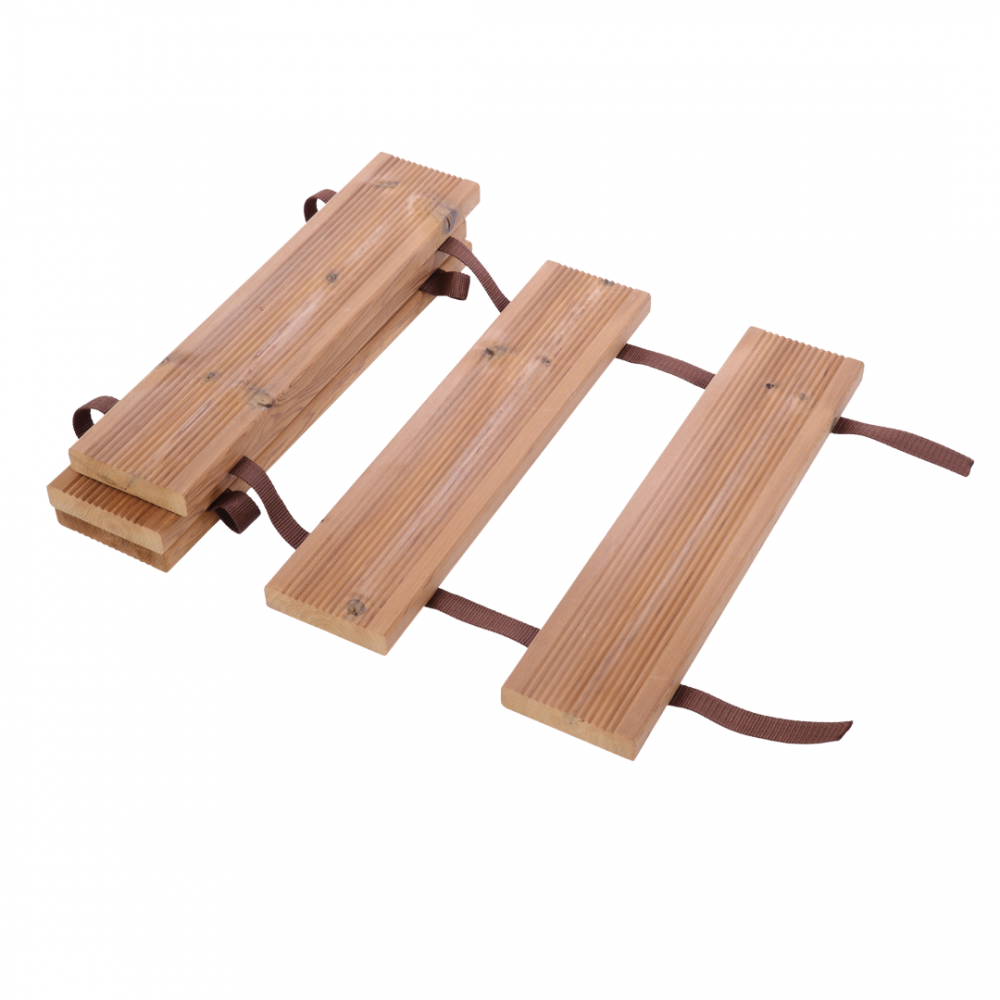 Deski są wyraźnie masywne i grube, co zapewnia komfort użytkowania i stabilność konstrukcji na każdym typie podłoża.