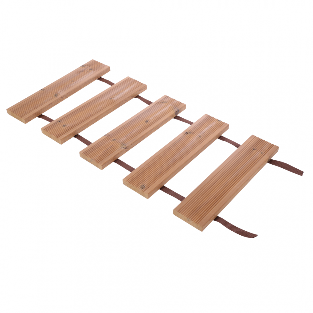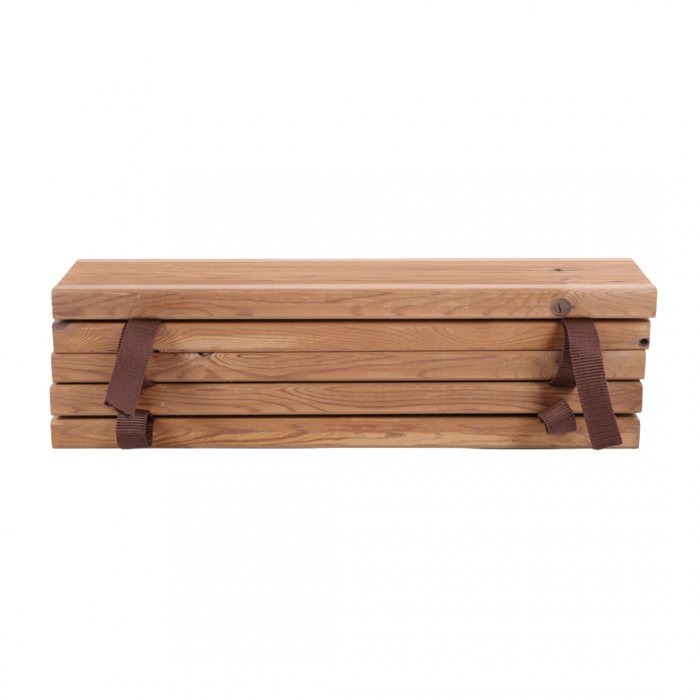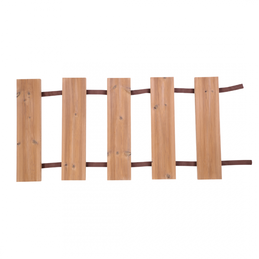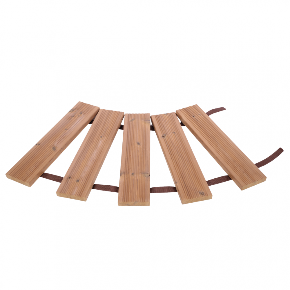 Ścieżki wykonane są z termososny, która dzięki obróbce termicznej nie wymaga impregnacji ani malowania. Drewno zyskuje naturalny, głęboki kolor w odcieniu brązu — to efekt temperatury, nie chemii.