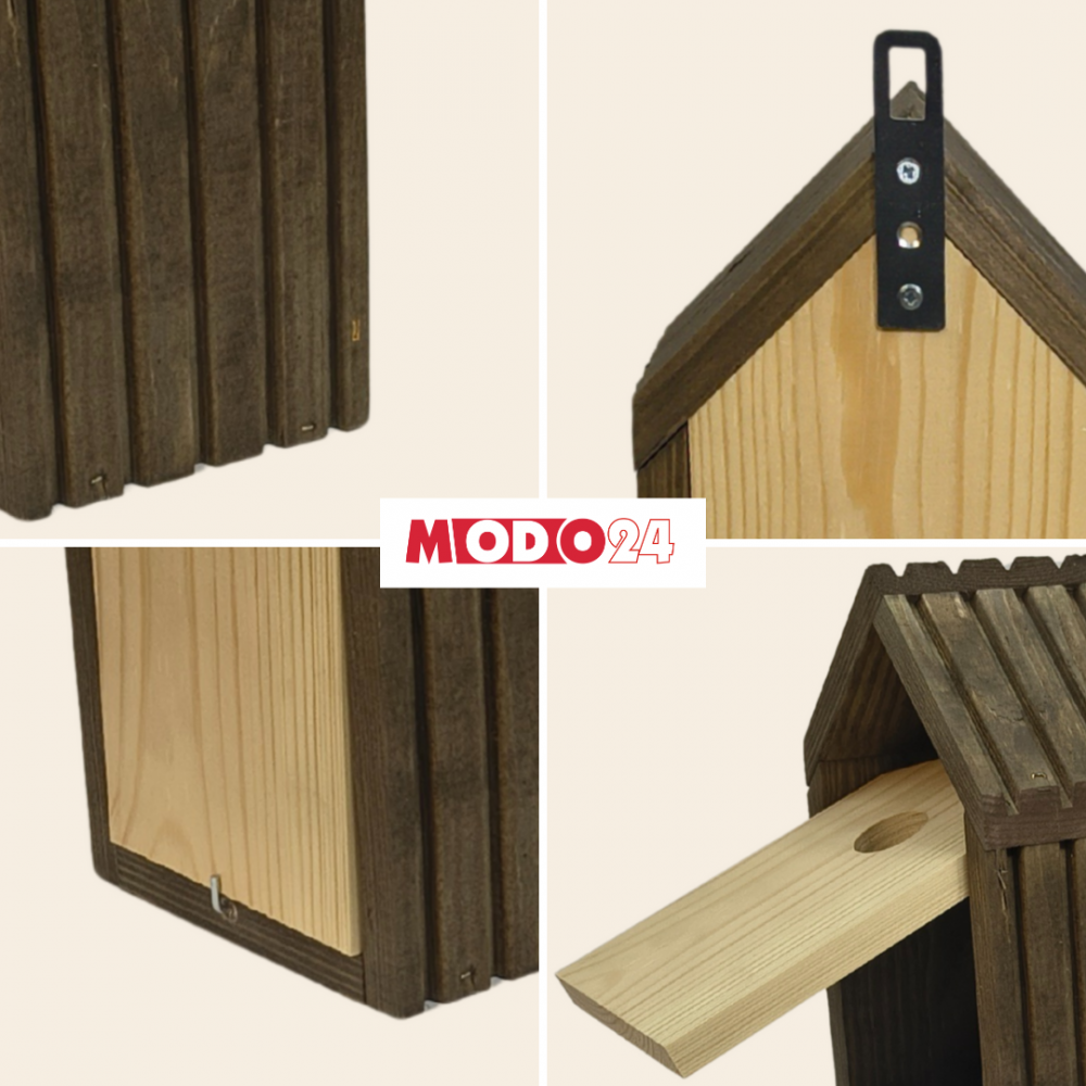 ⭐ Każda budka zachowuje swój naturalny, lamelowy charakter, który sprawia, że jest nie tylko schronieniem dla ptaków, ale również ozdobą tarasu, działki czy ogrodu.