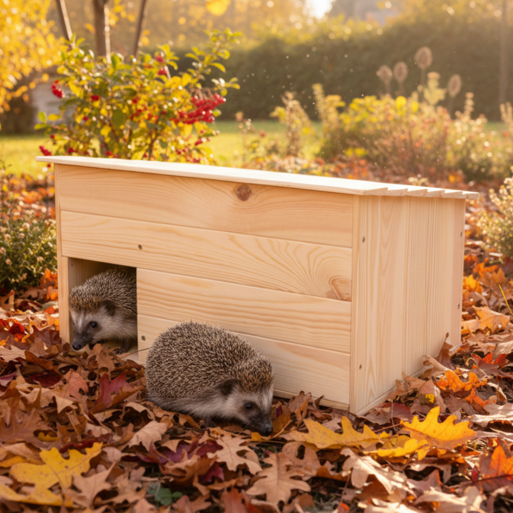 Domek o odpowiednich wymiarach stanowi bezpieczne miejsce do zimowania i ochrony dla jeży, które chętnie osiedlają się w spokojnych i osłoniętych zakątkach ogrodu.