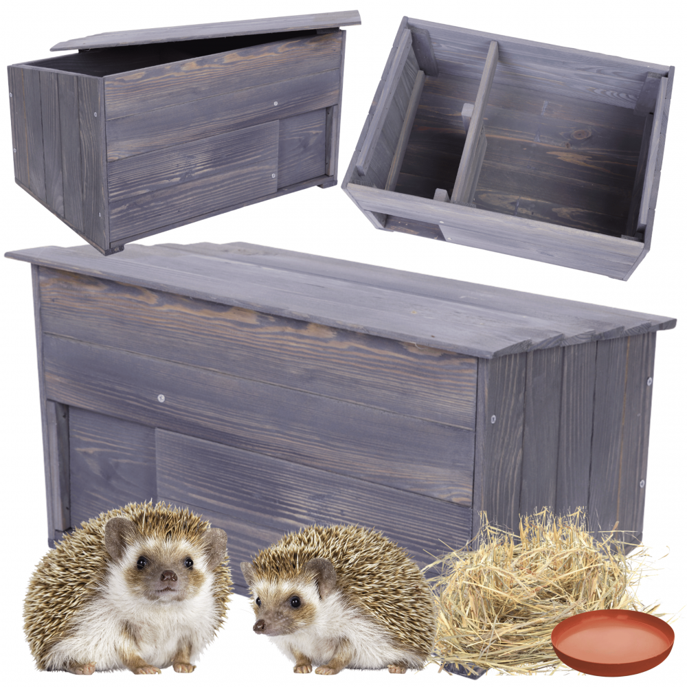 Domek dla jeża L budka drewniana ogrodowa impregnat miseczka i sianko eko