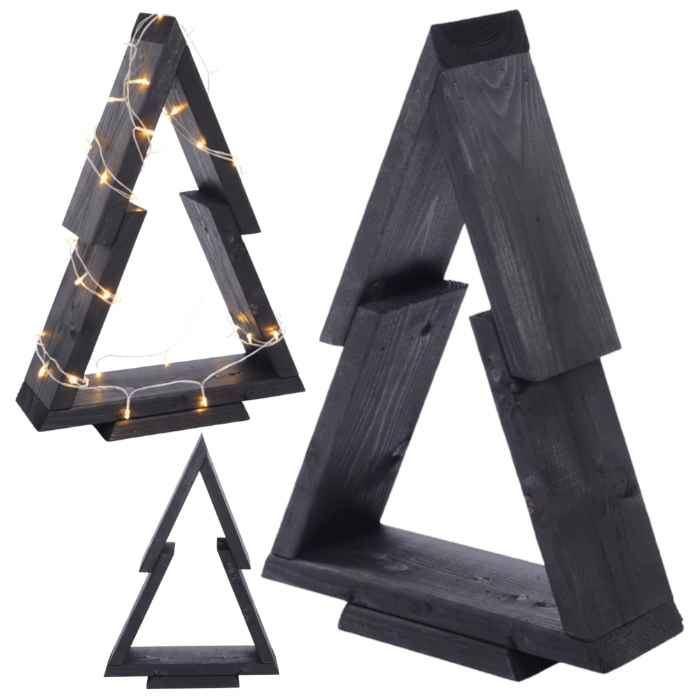 Choinka drewniana stojąca 43x30cm ZMONTOWANA IMPREGNOWANA czarna eko ozdoba