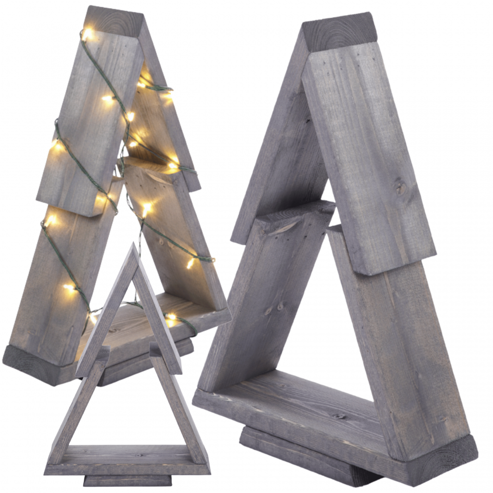 Choinka drewniana stojąca 43x30cm ZMONTOWANA IMPREGNOWANA szara eko ozdoba