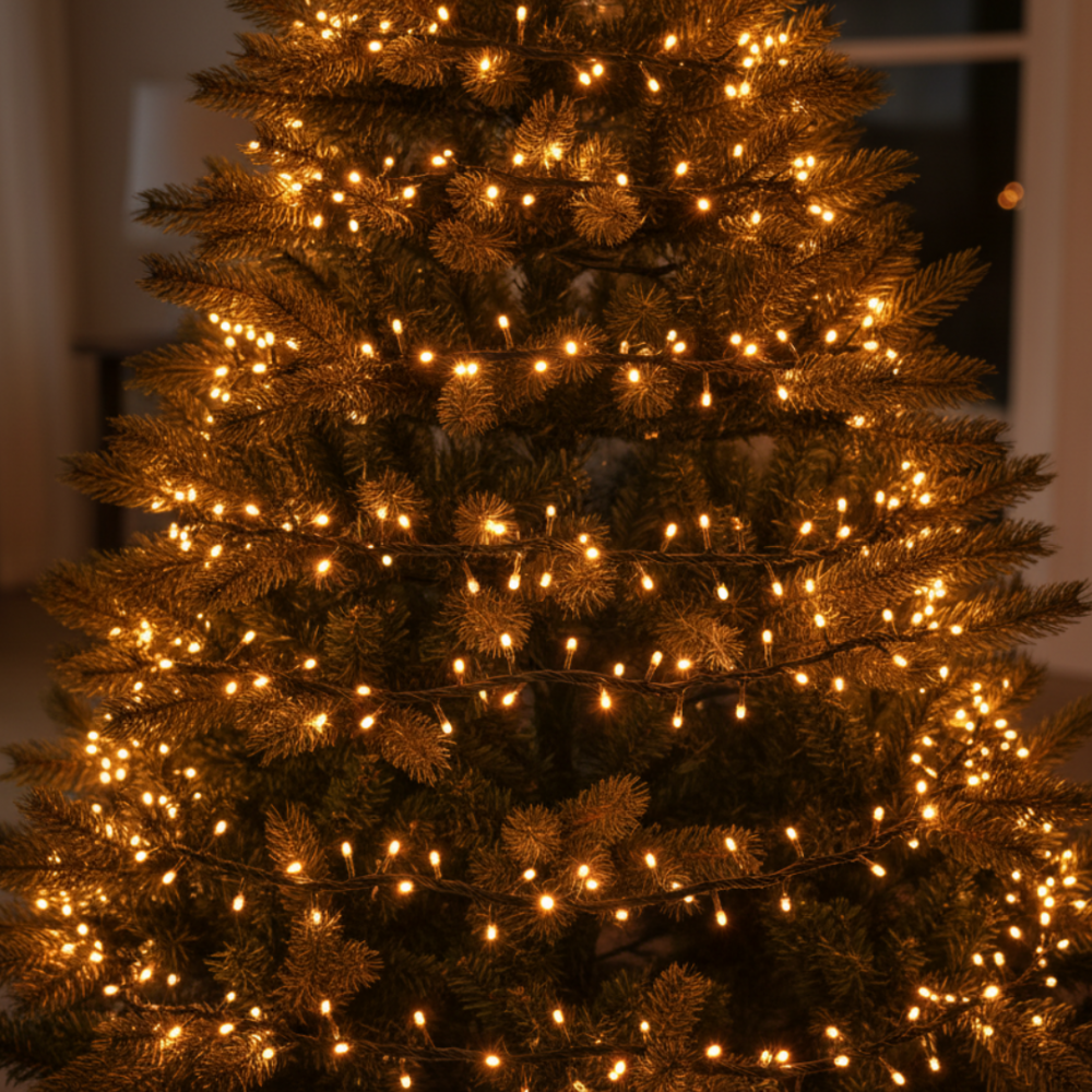 ⭐ Odpowiednio rozmieszczone lampki świąteczne podkreślają detale choinki i dekoracji, wypełniając przestrzeń miękkim blaskiem.