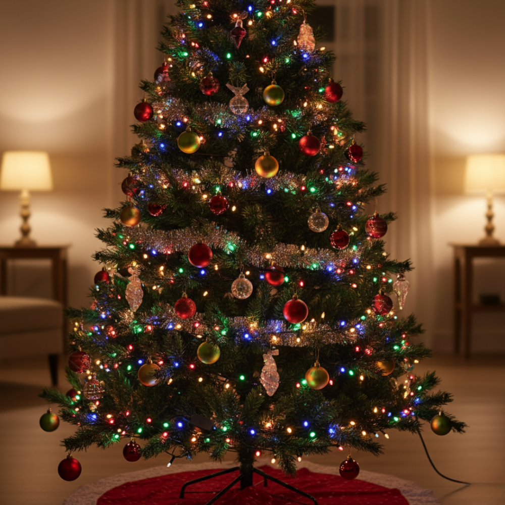 ⭐ Odpowiednio rozmieszczone lampki świąteczne podkreślają detale choinki i dekoracji, wypełniając przestrzeń miękkim blaskiem.