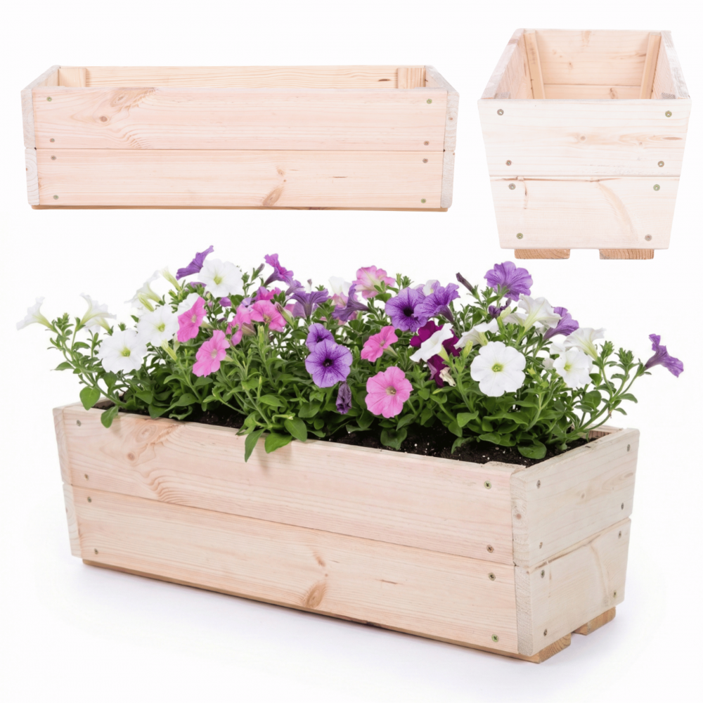 Doniczka drewniana sosnowa korytko MODO24 na parapet i balkon na kwiaty i zioła.