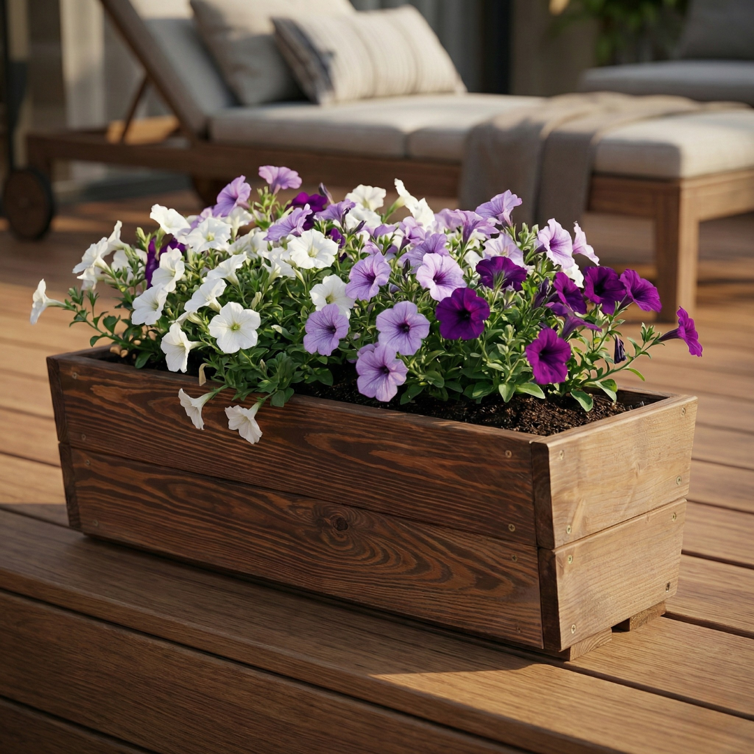 ⭐ Postaw na naturalny wygląd drewna, prostą formę i wygodne ustawienie roślin w domu lub na balkonie.