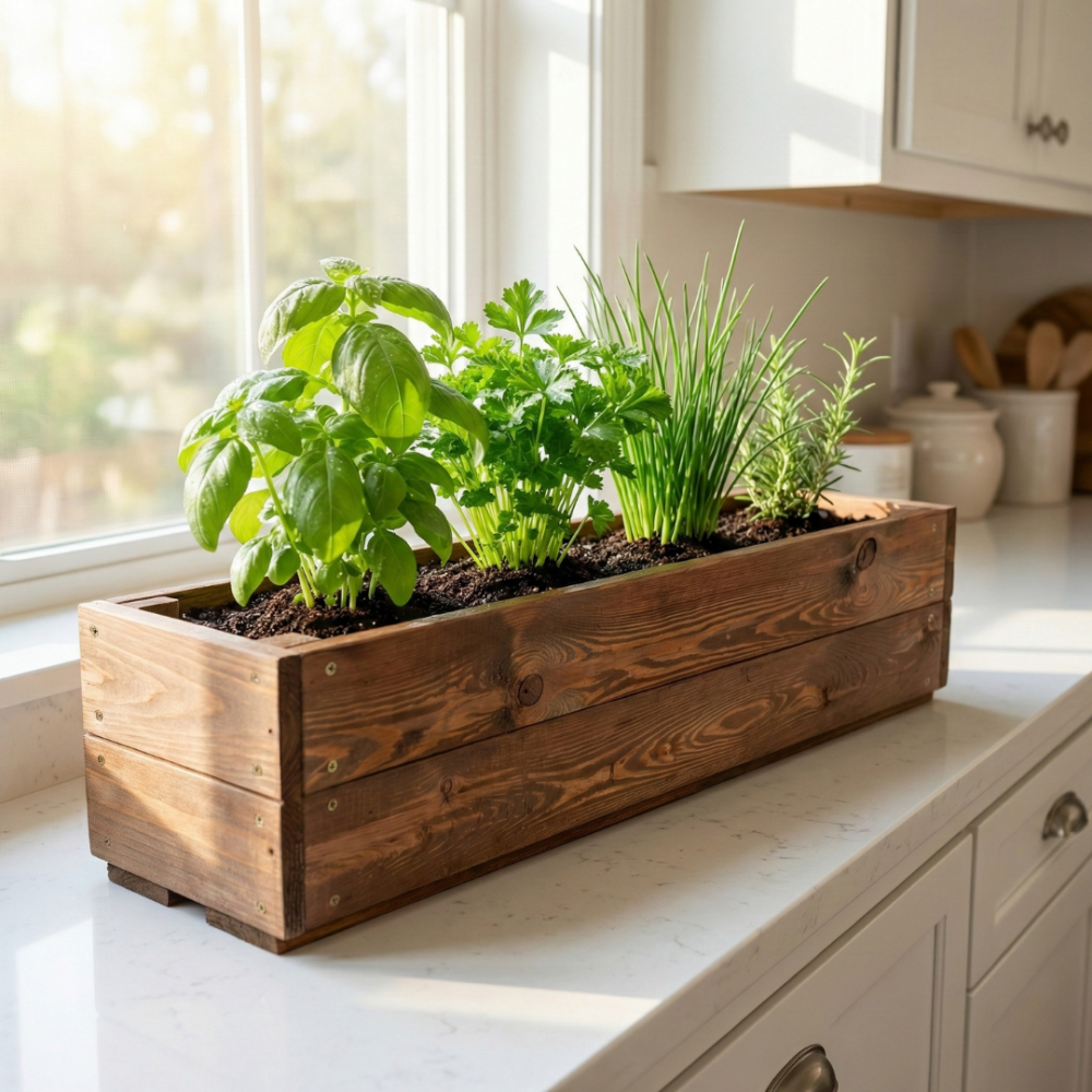 Doniczka drewniana sosnowa korytko MODO24 na parapet i balkon na kwiaty i zioła.