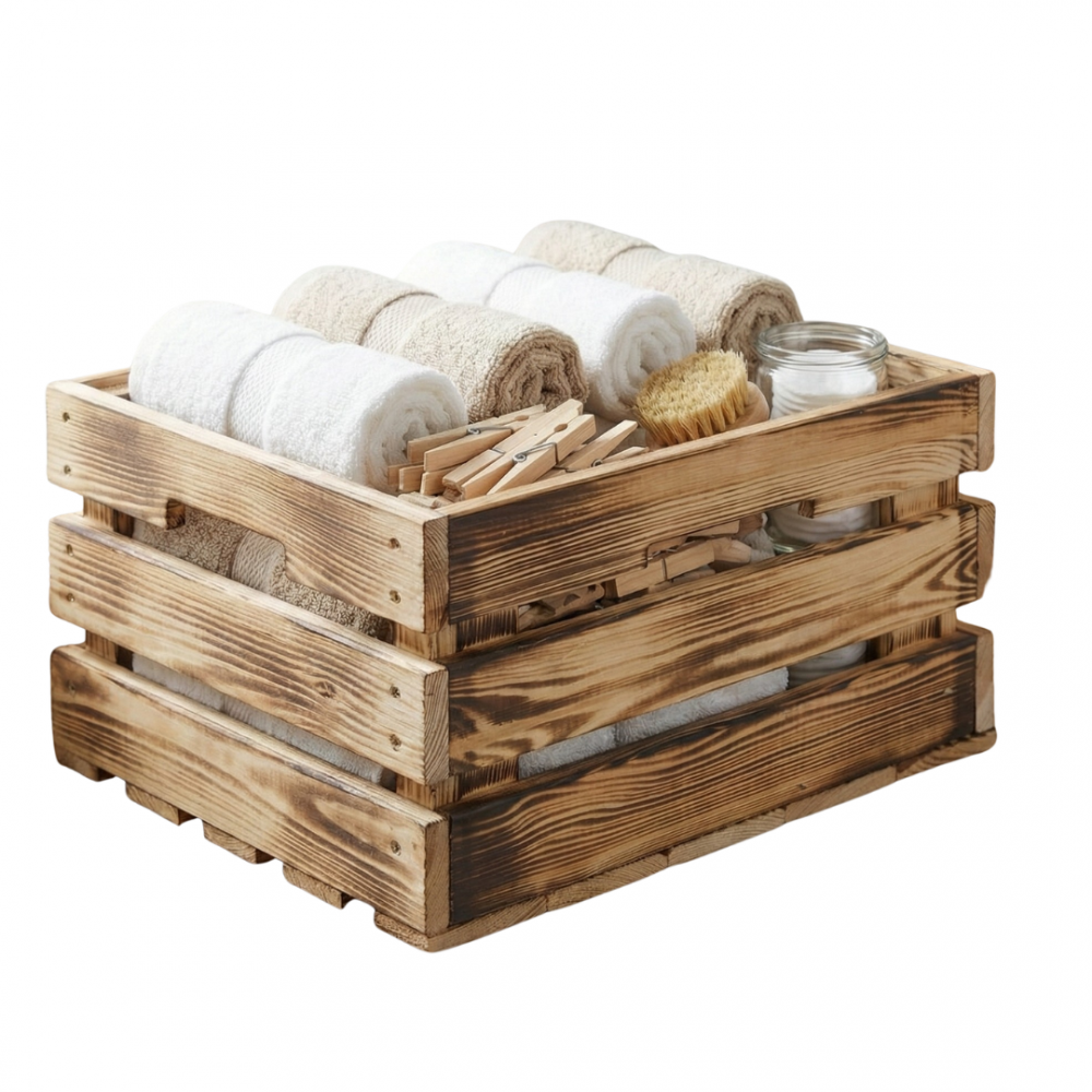 ❇️ Skrzynka drewniana z ażurowymi bokami, raczkami do przenoszenia i pełnym dnem, zaprojektowana do przechowywania, ekspozycji i tworzenia zabudów. Dzięki listwom na spodzie możesz ją stabilnie nakładać jedną na drugą i budować praktyczne aranżacje w kuchni, spiżarni, sklepie czy lokalu.