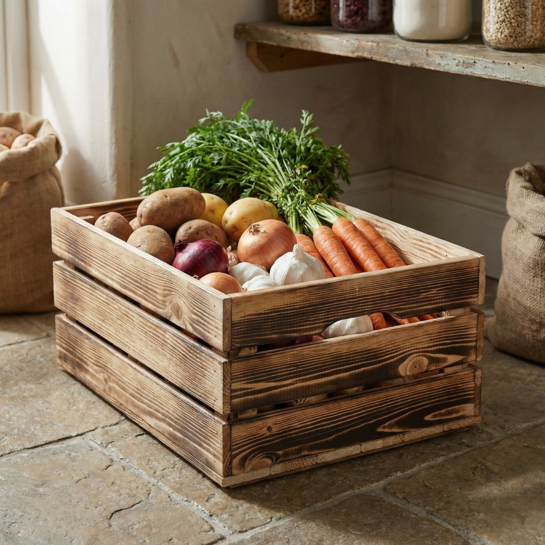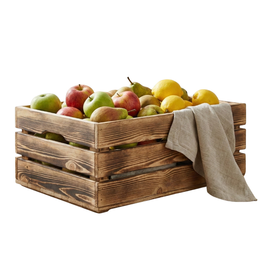 ❇️ Skrzynka drewniana z ażurowymi bokami, raczkami do przenoszenia i pełnym dnem, zaprojektowana do przechowywania, ekspozycji i tworzenia zabudów. Dzięki listwom na spodzie możesz ją stabilnie nakładać jedną na drugą i budować praktyczne aranżacje w kuchni, spiżarni, sklepie czy lokalu.