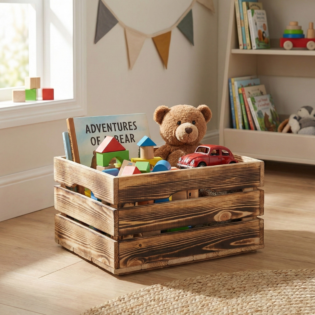 ✅ Listwy na spodzie – skrzynka nie dotyka bezpośrednio podłoża i pewnie się piętruje