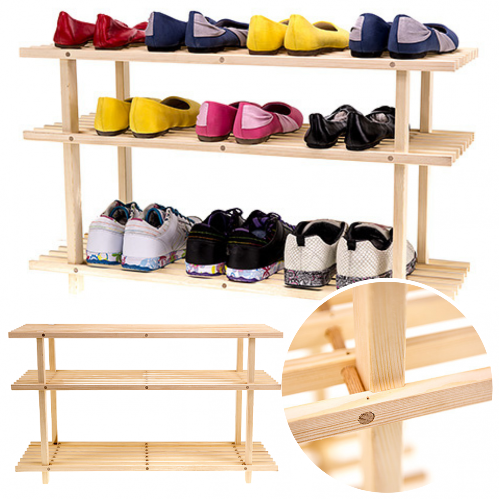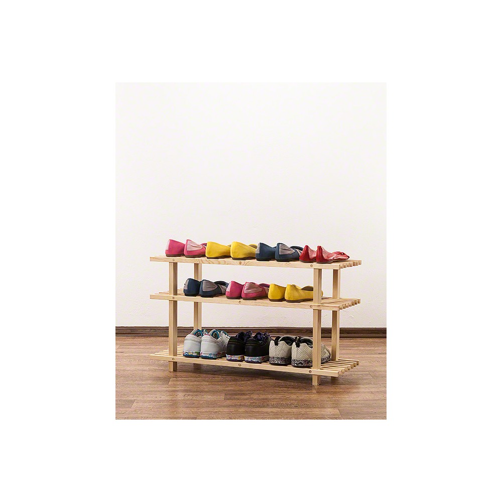 REGAŁ DREWNIANY NA BUTY 3 PÓŁKI SOSNOWY DO SPIŻARNI PÓŁKA STOJAK PRZEDPOKÓJ