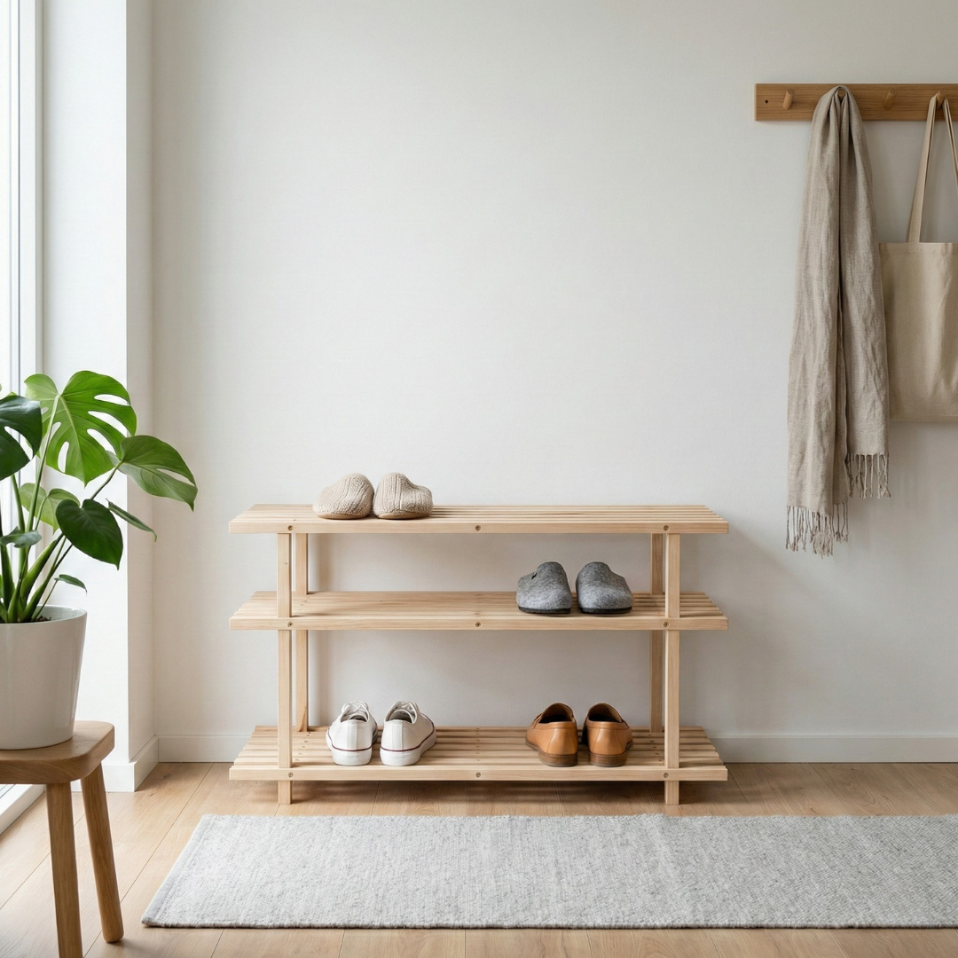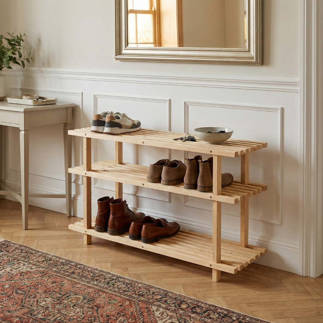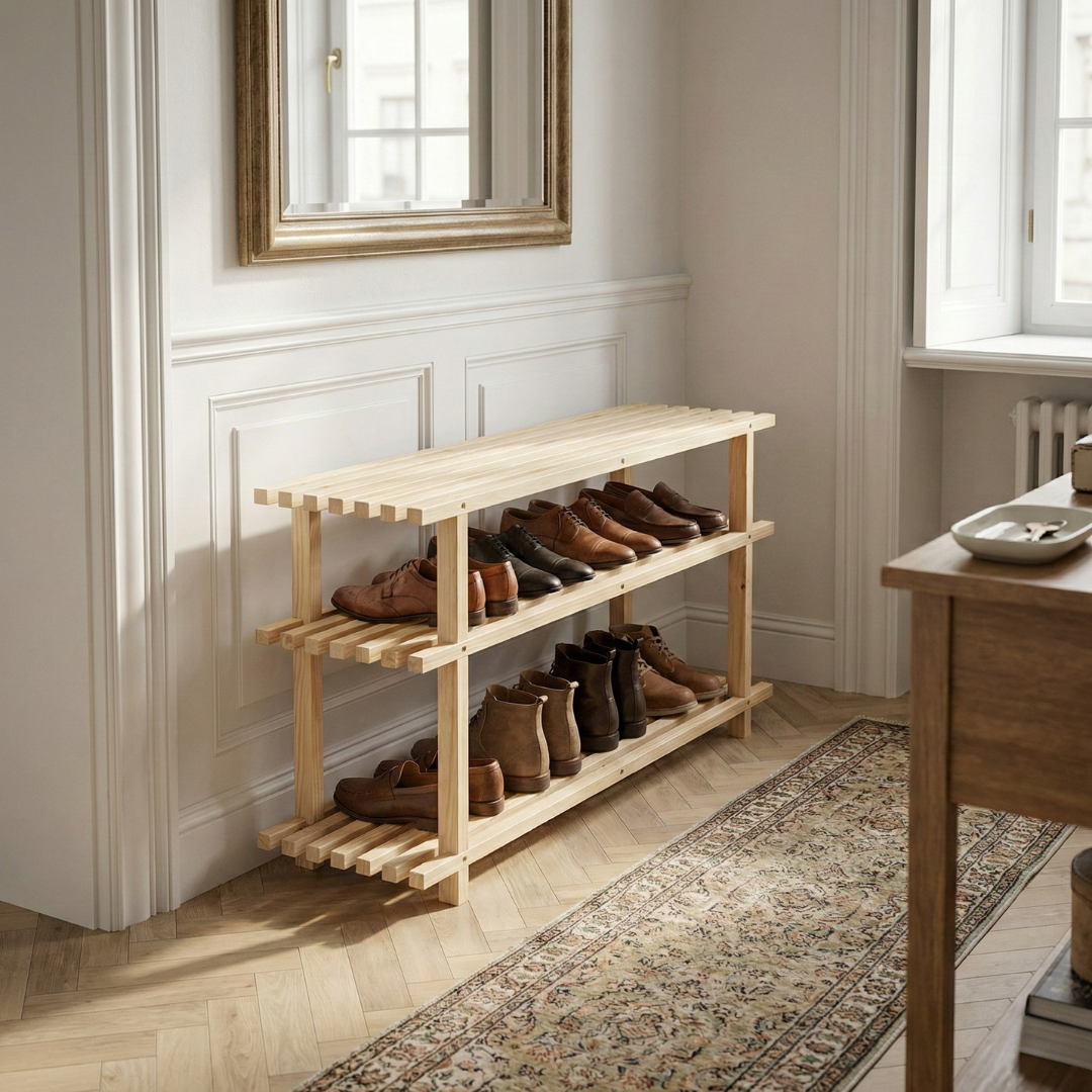 - drewniany regał na buty