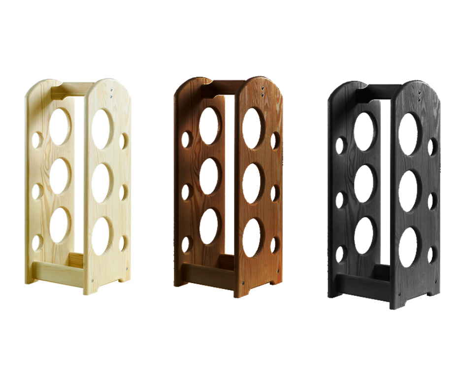 Przenośny regał na wino to praktyczne rozwiązanie do przechowywania i wygodnego przenoszenia butelek między kuchnią a piwniczką. Ergonomicznie wyprofilowana rączka ułatwia transport, a stabilna konstrukcja pozwala bezpiecznie odkładać trunki. Wykonanie z drewna sosnowego oraz szlifowane, zaokrąglone krawędzie podnoszą komfort użytkowania. Produkt jest przeznaczony do samodzielnego montażu, dzięki czemu łatwiej go przechowywać i przewozić.