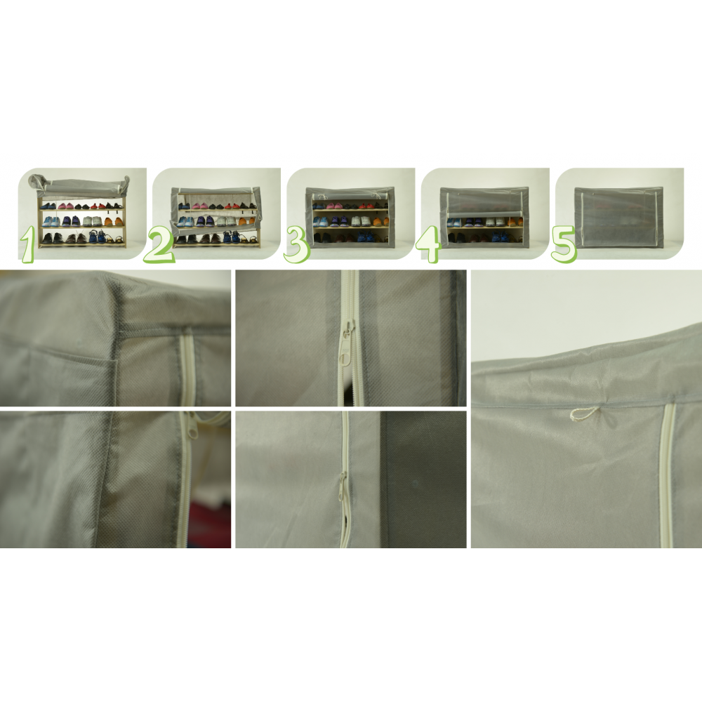 Opcjonalnie: pokrowce na regały – przewiewna flizelina chroniąca buty przed kurzem (kurtyna rolowana, otwieranie na suwaki).