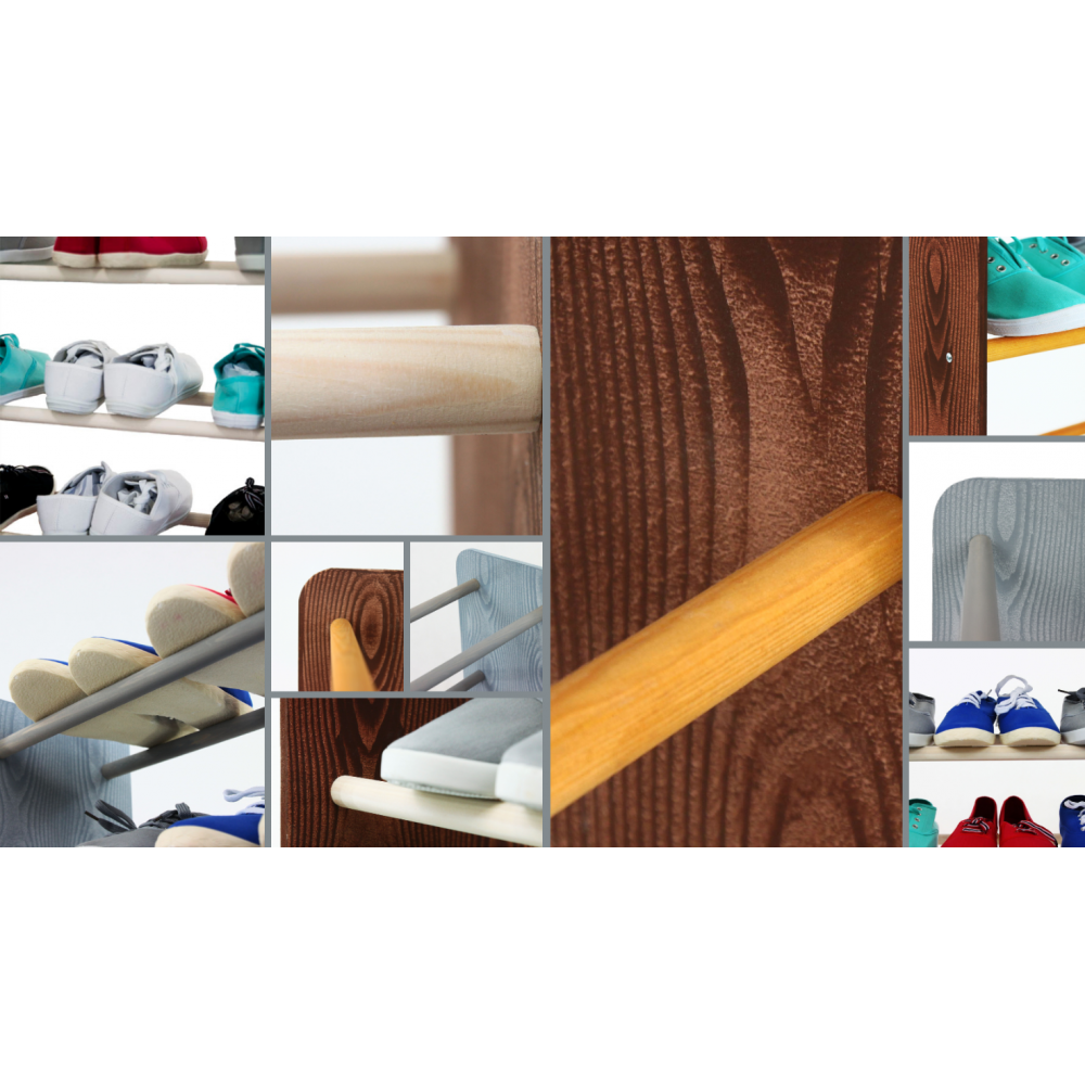 ➡️ Szukasz lekkiego, przewiewnego regału, który porządkuje obuwie i nie zbiera brudu jak pełne półki? RBS to prosta, praktyczna konstrukcja z drewnianymi drążkami.