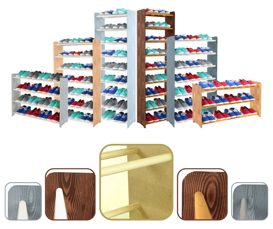 ➡️ Szukasz lekkiego, przewiewnego regału, który porządkuje obuwie i nie zbiera brudu jak pełne półki? RBS to prosta, praktyczna konstrukcja z drewnianymi drążkami.